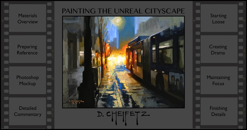 Master artist David Cheifetz takes you through the journey of composing and creating a dramatic cityscape oil painting from beginning to end.